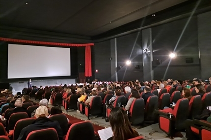 Avant la projection du film, le ministre Hideaki Ishii, chef de mission adjoint, a prononcé un mot de bienvenue et a mentionné que les salles de cinéma ne sont pas seulement des lieux de divertissement, mais elles sont également des endroits importants qui soutiennent l’esprit des communautés et qui créent des connections.