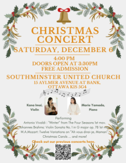 | 6 décembre | Southminster United Church (15, avenue Aylmer, Ottawa) |