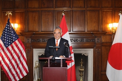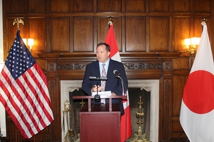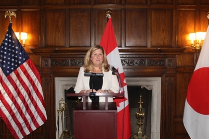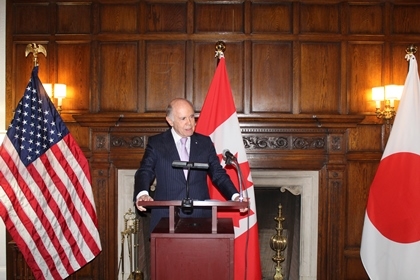 冒頭、山野内大使はスピーチの中で、人と人との関係が国と国との関係を築く旨述べ、日・加・米の3か国がそれぞれのソフトパワーを活かし、互いの関係を深めるのみならず、世界全体との関係をも良好にするために協力できることを強調しました。続いて、加日議員連盟副会長であるクリスタ・ロス下院議員は、日本初の女性総理となった高市早苗氏の成功を祈るとともに、3か国の多国間関係を一層強化していく必要性について述べました。トーマス・ダッキーノ・カナダ国立美術館財団名誉会長は、困難な時代だからこそ、文化外交の建設的な力を思い出すことが重要である旨述べました。最後に、デービッド・ジェーンズ国際文化会館北米事務所長が、サーロー節子氏からのメッセージを代読し、文化外交こそが国際文化会館の使命の中核にあることを強調して開会挨拶を締めくくりました。