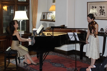 ピアノの山田万梨氏とヴァイオリンの今井香奈氏による音楽演奏 |