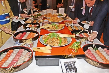 その後のレセプションでは、日本食及び日本酒が振る舞われました。参加者たちは交流を深め、有意義な機会となりました。