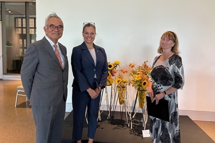 9月11日、山野内勘二大使は、いけばなインターナショナル・オタワ支部とカナダ自然博物館との共催による2025年度展覧会「Nature’s Beauty Reimagined」の開会式に出席しました。本開会式は、カナダ自然博物館において9月12日から同展覧会が一般公開されるのに先立ち、関係者を招いて開催されたものです。本年、いけばなインターナショナル・オタワ支部は創立56周年、また、カナダ自然博物館との共催も40周年を迎える節目の年となりました。
