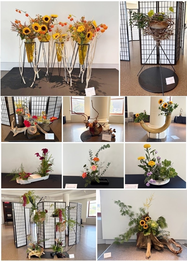 同展覧会は、小原流及び草月流いけばなオタワ支部が、流派の垣根を越えて華道の伝統を次世代へ継承していくための重要な取組の一環として開催しているものです。展示会場では、「Nature’s Beauty Reimagined」というテーマの下、自然から得たインスピレーションを生け花で表現した作品が、落ち着いた雰囲気の中で美しく展示されました。